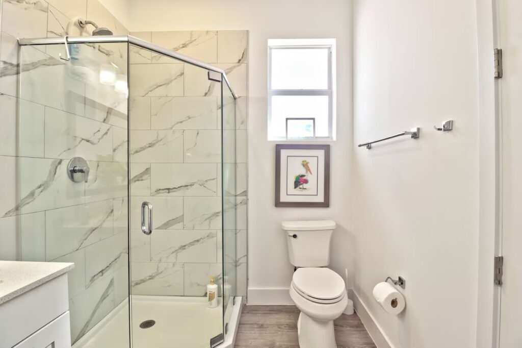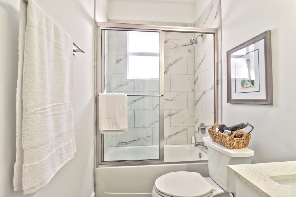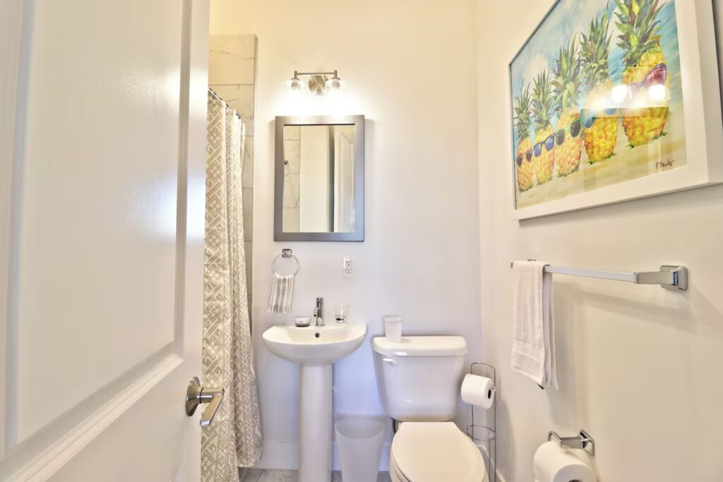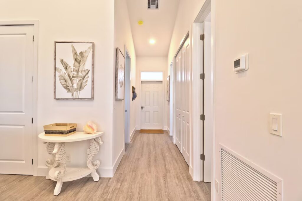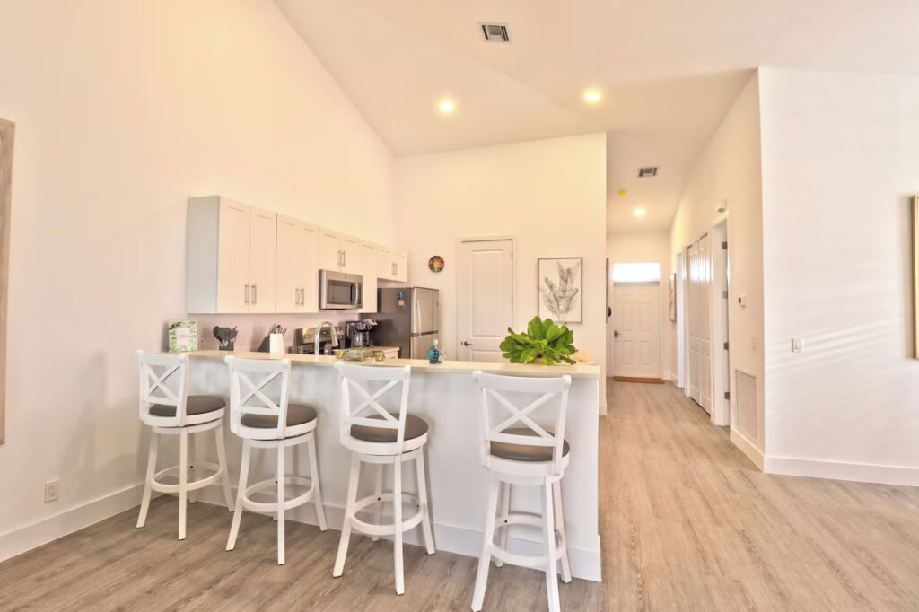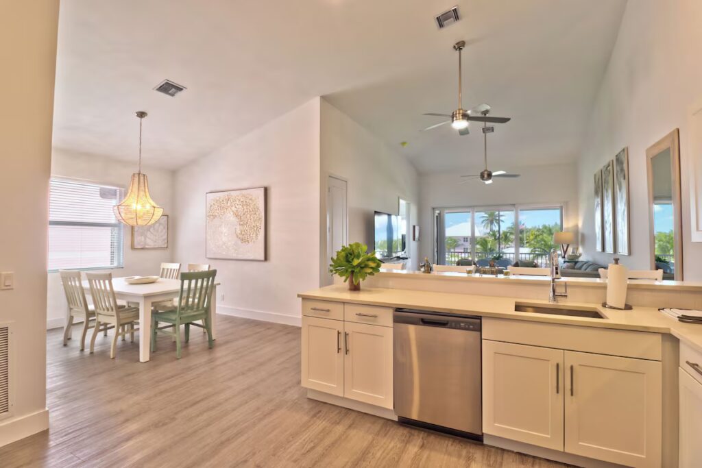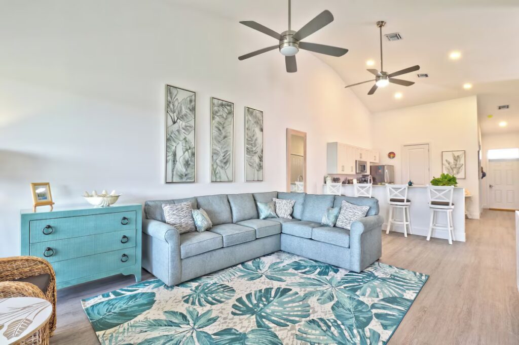 This Treasure Cay condo upstairs unit boasts 3 inviting bedrooms, including 2 king beds and 2 twin beds. Comes with amenities like Wi-Fi, AC, and an iron. The 3 bathrooms are equipped with showers, towels, and hair dryers. Washing machine and dryer included.